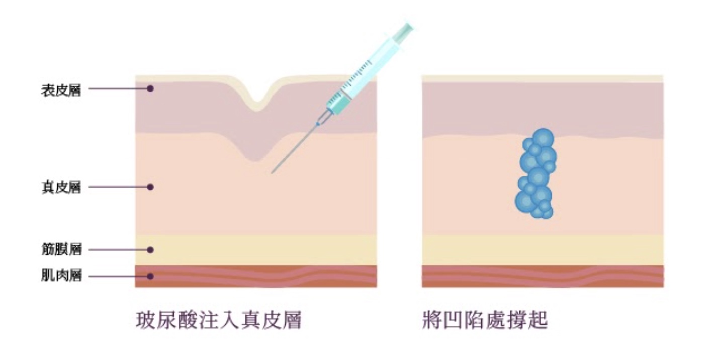 ➡ 注射後立即見效,隨時間自然吸收代謝,無須手術、恢復期短。