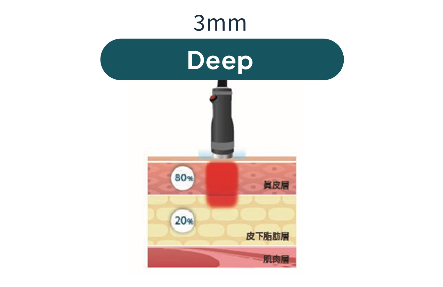 對臉部約 0.3 公分深的真皮層進行穿透式加熱,於真皮層的網狀區域快速堆疊熱能,從而刺激膠原組織。適用於嘴邊肉、下輪廓線及臉頸部。